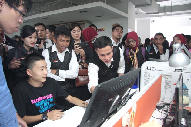 印度尼西亞青年代表團走進盛天彩公司參觀考察